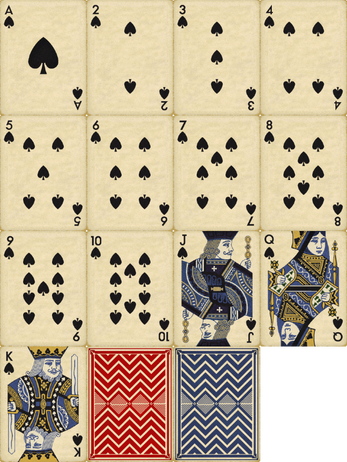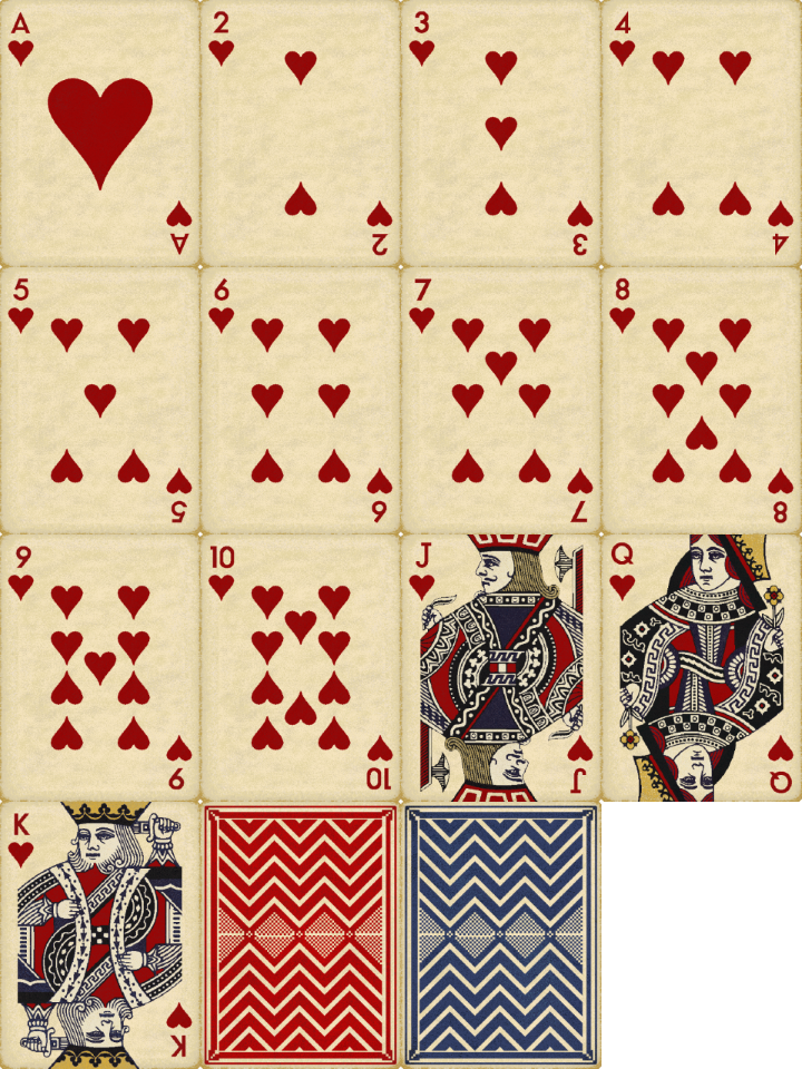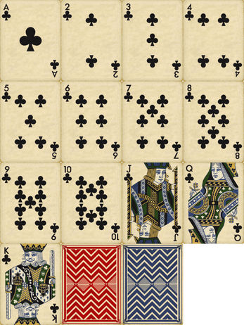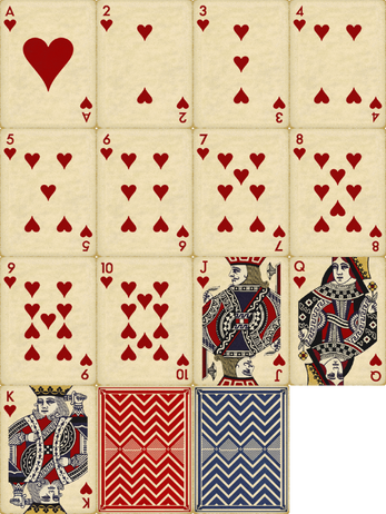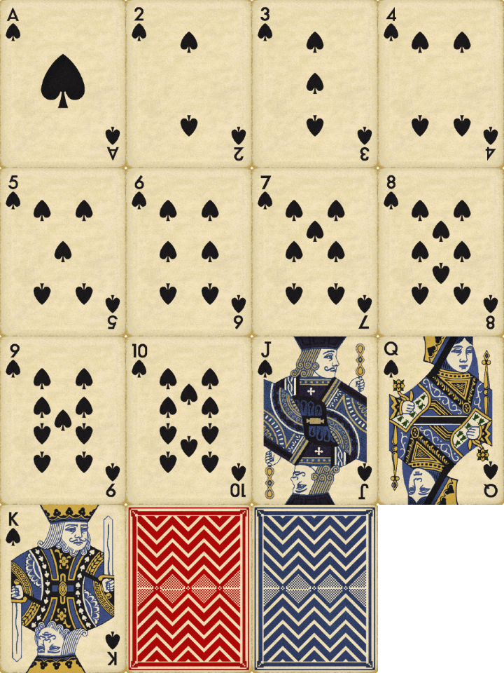 A complete deck of vintage playing cards, originally made for my game Penumbra.