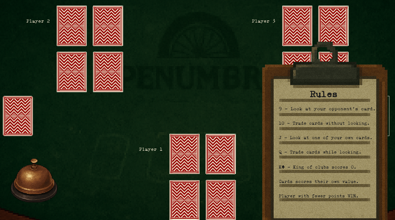So, I thought of merging my love for Balatro with Black King, a card game I play with my friends that's all about not seeing the cards, but relying on memory and uncertainty. And to give it a suspense/horror/noir atmosphere feslt just right.